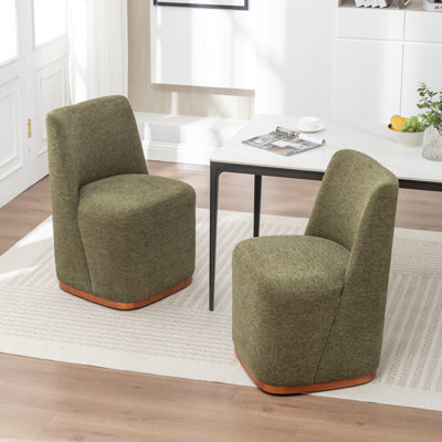 Create an accountThis dining chair is made of high-quality chenille fabric, which is soft to the touch and highly wear-resistant, giving you a comfortable dining experience. The bottom frame of the chair is made of walnut-colored solid wood, which is classic and steady, adding a touch of natural elegance. In terms of design, the chair is equipped with rollers for easy movement and flexibility to meet the needs of different occasions.