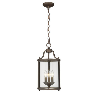Bring a bold and traditional look to any room with this 3-light lantern pendant. It features a sleek cylindrical silhouette with a frame that's crafted from steel with your choice of finish. A clear glass shade surrounds the candelabra base, which holds three bulbs (sold separately). We love that this pendant works with dimmer switches, so you can alter the light level and your space's overall ambiance. It also hangs with the help of a height-adjustable chain and a canopy that's compatible with sloped ceilings.