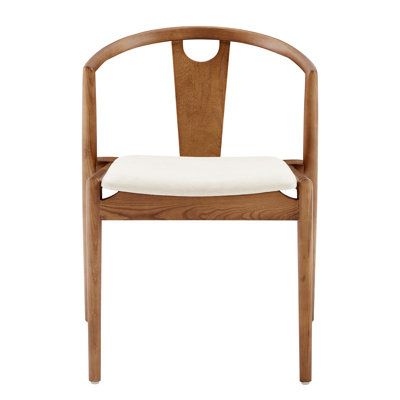 Create an accountIntrinsic curvature. This modern dining chair offers a sleek, refined design that complements any contemporary dining area. Crafted from solid ash wood, the chair frame and legs showcase the natural wood grain color variation, while the foam-filled fabric upholstery ensures a comfortable and relaxing sitting experience. The streamlined slat-back design, framed with a rounded top, adds an aesthetic touch to the chair, making it an eye-catching addition to your dining space. With a weight capacity of 265 lbs., this side chair is both stylish and reliable. To protect your floors, it comes equipped with plastic glides.