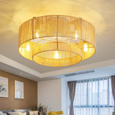 Create an accountIntroducing our Ceiling Fan with Light, a sophisticated blend of elegance and practicality designed to enhance any room. This ceiling fan features a classic five-blades design made from durable iron and paper rope, offering both strength and a touch of rustic charm. The integrated E12*5 (Bulbs not included) light kit provides a warm, inviting glow, while the remote control allows for effortless adjustment of the fan's six-speed motor to match your comfort needs. With impressive dimensions of 19.69 inches by 9.8 inches, this fan makes a striking statement, seamlessly fitting into a variety of interior styles. Elevate your living space with the ultimate combination of aesthetic appeal and performance.