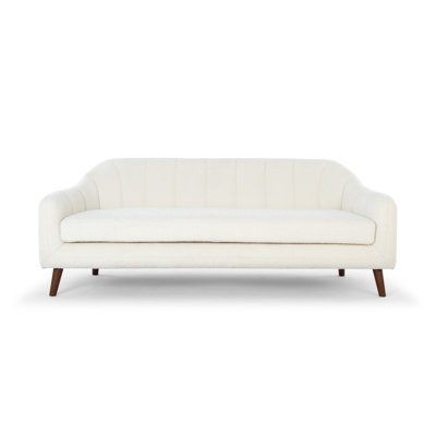 Create an accountThis sofa rounds out your living room layout with a mid-century modern look we love. The frame is crafted from solid wood, and it rests on splayed legs with a rustic walnut finish. This sofa is wrapped in a polyester blend with the jewel tone of your choice. Plus, the fabric is stain-resistant, so it's ready for whatever you throw at it. The foam and synthetic fiber-filled cushions offer you support as you read or relax. We love how the curved back and chic channel tufting complete this sofa's design. Plus, the seat cushions and their covers are removable for easy cleaning.