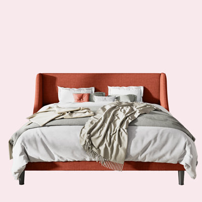 Create an accountThis platform bed features clean lines and a wingback design that grounds your bedroom with a modern look. The engineered wood frame is built on tapered legs with a sleek black finish, and it's upholstered in a linen blend with the hue of your choice. Compatible with an adjustable base, this bed works best with a standard-height mattress. We recommend pairing it with a patterned quilt and a few throw pillows for a finished look. Bonus: this bed has a handy slat system that eliminates the need for a box spring. Full assembly is required.