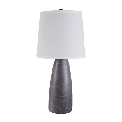 Create an accountBring contemporary style – and plenty of light – to the bedside or next to the sofa with this table lamp. Its gray resin base showcases a streamlined silhouette that pairs well with a variety of aesthetics, while a white fabric drum shade completes the aesthetic. This must-have lamp accommodates a 150W maximum bulb (not included) to cast your space in an inviting glow. Plus, it arrives in a set of two, so you can create a symmetrical look in your bedroom or living room.