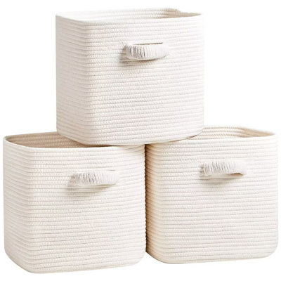 Create an accountMaximize your storage space with our Storage Cube Baskets. Featuring a unique drawer-style handle design reinforced with woven cotton rope, these baskets offer sturdy support for all your organizing needs. Their cube shape fits snugly into any corner, optimizing space utilization. Crafted from soft, eco-friendly cotton, these baskets maintain their shape flawlessly, ensuring durability. With three 11"x11" baskets included, you can easily categorize toys, clothes, or pet supplies. Versatile and charming, these baskets make a perfect gift for any occasion, adding functionality and style to any home. Experience the ultimate organizational solution with our Storage Cube Baskets from Wayfair.