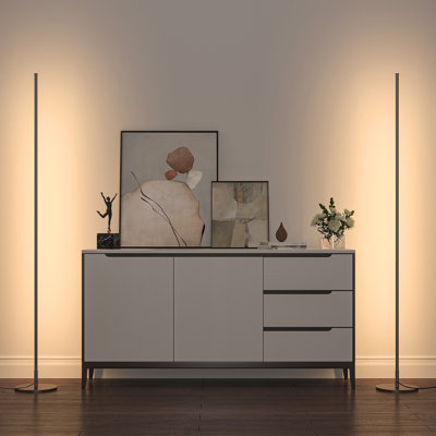 Create an accountThis set of two floor lamps brings a sleek, modern vibe to your space with its minimalist design. The LEDs are integrated into the vertical aluminum bar, offering a streamlined look that's ideal for contemporary settings. These lamps are dimmable, allowing you to adjust the brightness to suit your mood or activity, whether you're reading or relaxing. A handy foot switch on the cord means you can easily turn them on and off without needing a remote. Their slim profile makes them a great fit for smaller spaces or tight corners, adding functional lighting without taking up much room.