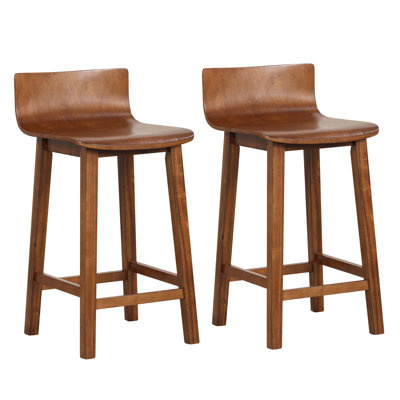 Create an accountThese counter stools are designed to be the perfect place to enjoy a leisurely lunch or relaxing beverage before bed. They blend a beautiful wood grain and retro silhouette to complement just about any dining setup. Each stool is crafted from a mix of solid and engineered wood with a warm brown finish, and it rests on four angled legs with stretchers on all four sides. We especially love the low back and the armless silhouette, so it's easy to slide beneath tables when not in use. Super sturdy with a weight capacity of 330 lbs.
