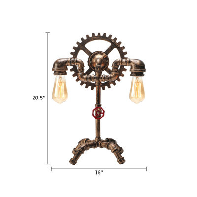 Create an accountndustrial Style Steampunk Gear Pipe Table Lamp Rustic Bronze Desk Light 20"