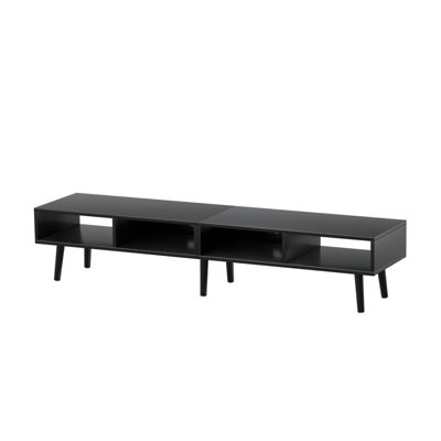 Create an accountDo you enjoy watching movies with family in the living room, playing video games with friends in the game room, or having a quiet film night in bed with a meal tray? This versatile TV cabinet is designed to complement your favorite leisure activities. It features a simple and minimalist design with four open shelves for storage and display, allowing you to organize your media devices and collections. The classic color design ensures it will seamlessly match your existing furniture, while the sturdy structure and cord management feature provide practical functionality. Crafted from durable particleboard, this piece of furniture will be a reliable companion for years to come, allowing you to enjoy your favorite series in comfort.