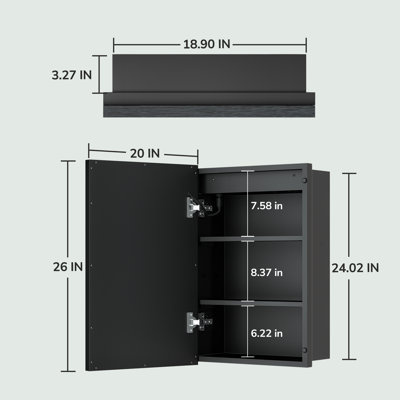 Create an accountThis medicine cabinet incorporates a built-in LED light and a sleek rectangular profile to provide a functional and streamlined update for your bathroom. Its aluminum frame encloses a flat-edge mirror with a defogger, helping to maintain a clear surface during humid mornings. The mirrored door opens on soft-close hinges to reveal two adjustable metal shelves that offer organized storage for your daily essentials. It also includes an integrated electrical outlet and USB port to keep your devices powered and ready. Plus, this piece is water-resistant and rust-resistant to handle damp environments.