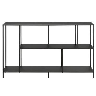 Create an accountClean, minimalist lines make this console table the perfect addition to your living room, bedroom, or entryway. Proudly display knick-knacks, magazines, and more on the durable steel top and staggered lower shelves. The streamlined look and neutral metallic finish pair seamlessly with your existing color scheme and décor style.