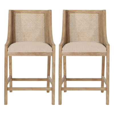 Create an accountTake inspiration from our beautiful and practical barstool set and create a refreshed, refined space. These French country stools are incredibly refined with their textured cane backrests, H-frame bases, and simple silhouettes. A sophisticated aesthetic creates a refined ambiance, while solid wood frames lend a hint of rustic contrast. Their classic style is sure to complement any carefully-curated space. Your eye will be instantly drawn to these stools, so they’re sure to tie your wet bar, dining area, or kitchen together perfectly.