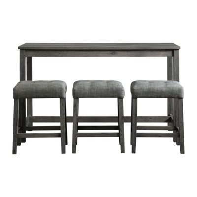 Create an accountThis 3-piece counter-height dining set for three creates a homework bar with an industrial flair. It includes one counter-height table with built-in shelves and three matching bar stools. The table is crafted from solid and engineered wood with an organic dark gray finish – we love that it comes with built-in USB ports and a power outlet for plugging in your phone and laptop. Plus it comes with three upholstered bar stools and their backless forms mean you can slide them under the counter and out of the way when not in use, creating more floor space.