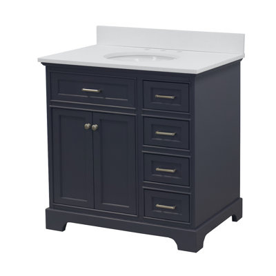 Create an accountThis Eliason 36" single bathroom vanity set includes a cabinet with soft close doors and drawers, a marble countertop with stunning double-thick beveled countertop edges, and an undermount ceramic sink. All 36" single bathroom vanity set comes with countertop and sinks pre-installed. No two slabs of marble/quartz are the same! This is 100% authentic marble/quartz imported from Italy. Many competing models are advertised as solid wood when in fact only the structural frame of the cabinet is made of solid wood, and the doors, drawers, and other panels are made of plywood. The frame, doors, and drawers are 100% solid pine wood! Natural finish drawer interiors so that you can see exactly what it's made of.