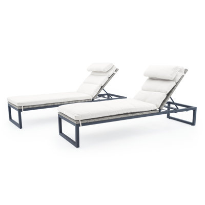Create an accountThis Collection takes a classic style of outdoor chaise lounges and adds a modern twist with exposed, powder-coated aluminum legs, paired with durable designer Sunbrella fabric mattresses. The backrest can be easily adjusted at five different angles to provide a lounging experience that truly lets you unwind. Plus, to make storage easy, the loungers can be stacked on top of each other.