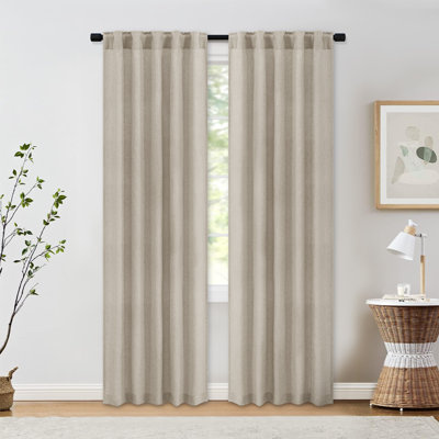 Create an accountThese semi-sheer curtain panels soften your room with airy texture and a clean, relaxed look. Made from a linen-blend fabric, they filter light while still maintaining a sense of privacy – ideal for living rooms, dining areas, or even bedrooms when layered with other curtains. The back tab header creates a crisp pleated effect and offers a smooth glide along most curtain rods. Neutral tones make them easy to coordinate with a range of styles, from modern farmhouse to coastal. Plus, the lightweight weave brings effortless movement to your windows.