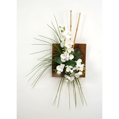Silk Orchid Bamboo and Grass Floral Arrangement in Wood Sushi Tray