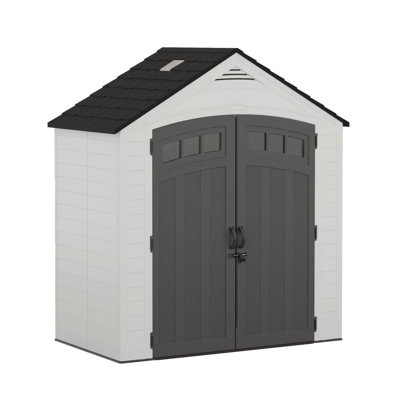 Create an accountThe slim footprint of this 7 ft. x 4 ft. Vista® Storage Shed from Suncast® fits nicely along a house or garage for when yard space is limited, making it perfect for storing away ladders, long-handled tools, planters, and gardening equipment. A large double-door entry allows you to access the spacious interior, which is padlock-ready with a metal hasp for added security (lock not included). This unique shed features the innovative IllumiVent™ system from Suncast®, which helps provide air circulation to reduce humidity and air temperature and naturally lights the interior while you work. Constructed of reinforced, multi-wall resin panels, this sturdy shed is weather-resistant and built to withstand the elements all year long.