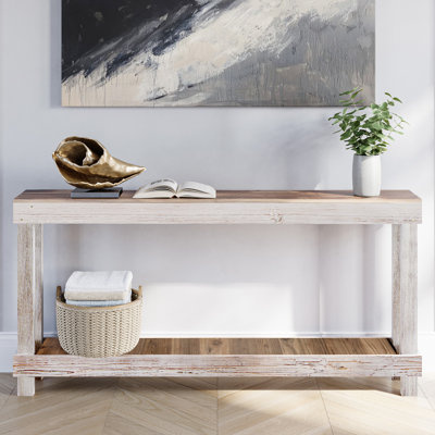 Create an accountThis reclaimed wood console table blends rustic elegance with eco-friendly craftsmanship, made from natural solid wood to showcase unique grain patterns and textures. Its 60" long and narrow design, combined with clean lines and a natural finish, makes it a versatile addition to any space—whether in an entryway, living room, or behind a sofa. Perfect for adding warmth and character to your home, it also offers a practical surface for decor or storage. These wood pieces, having endured the test of time, bear unique marks that tell their history, and through careful handcrafted processing, we preserve the wood’s original characteristics and natural beauty while ensuring functionality.