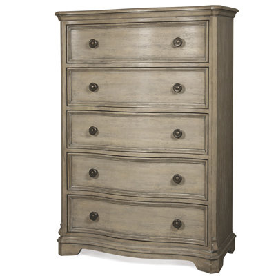 Create an accountPlace this 5-drawer chest in your bedroom and bring some French country appeal along with it, with its curved front profile and bracket feet. It's made from solid and engineered wood in a neutral finish, with wood grain color variation for a more natural-looking surface. This chest features molded edges and a distinctive silhouette, while five dovetailed drawers with contrasting bronze handles give you space to store seasonal clothes or everyday linens. There's also a wall anchor included for added safety. Hand-curated by Kelly Clarkson.