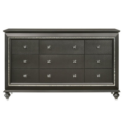Create an accountThe Kaitlyn dresser provides a commanding presence in any room. Crafted with a transitional look that is an ideal addition to any bedroom, the dresser is accented with textured front and a crystal-like sparkling trim. Its crystal-like trimming creates dazzling glow for your master bedroom. Multiple storage drawers allow you to keep your sleeping area nicely neat.
